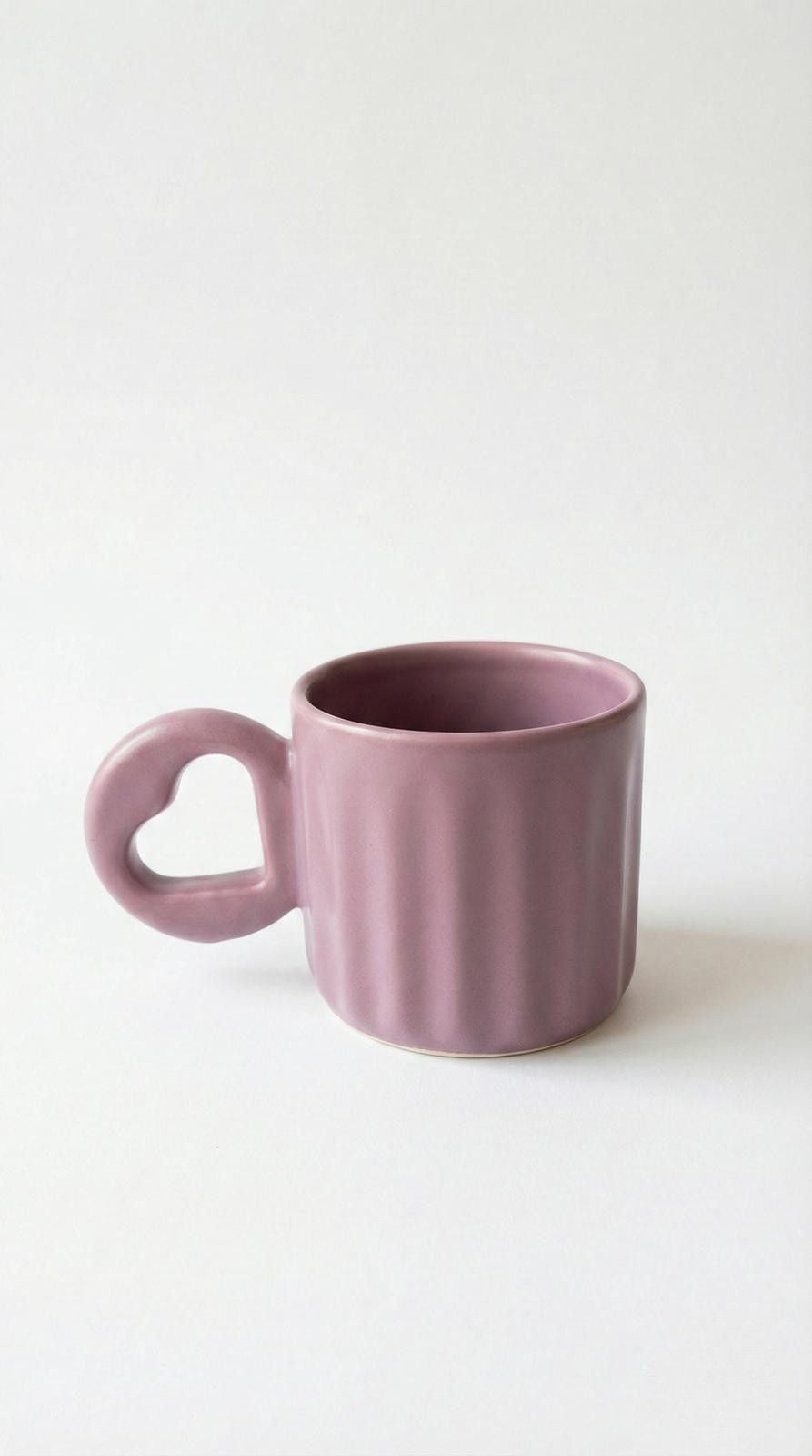 Kalp formundaki kulp detayıyla öne çıkan bu mat seramik fincan, çay ve kahve molalarınızı daha anlamlı hale getirmek için tasarlandı. Mat yüzeyiyle elde yumuşak bir tutuş sunar; sade ve zarif formu, her ortama uyum sağlar.